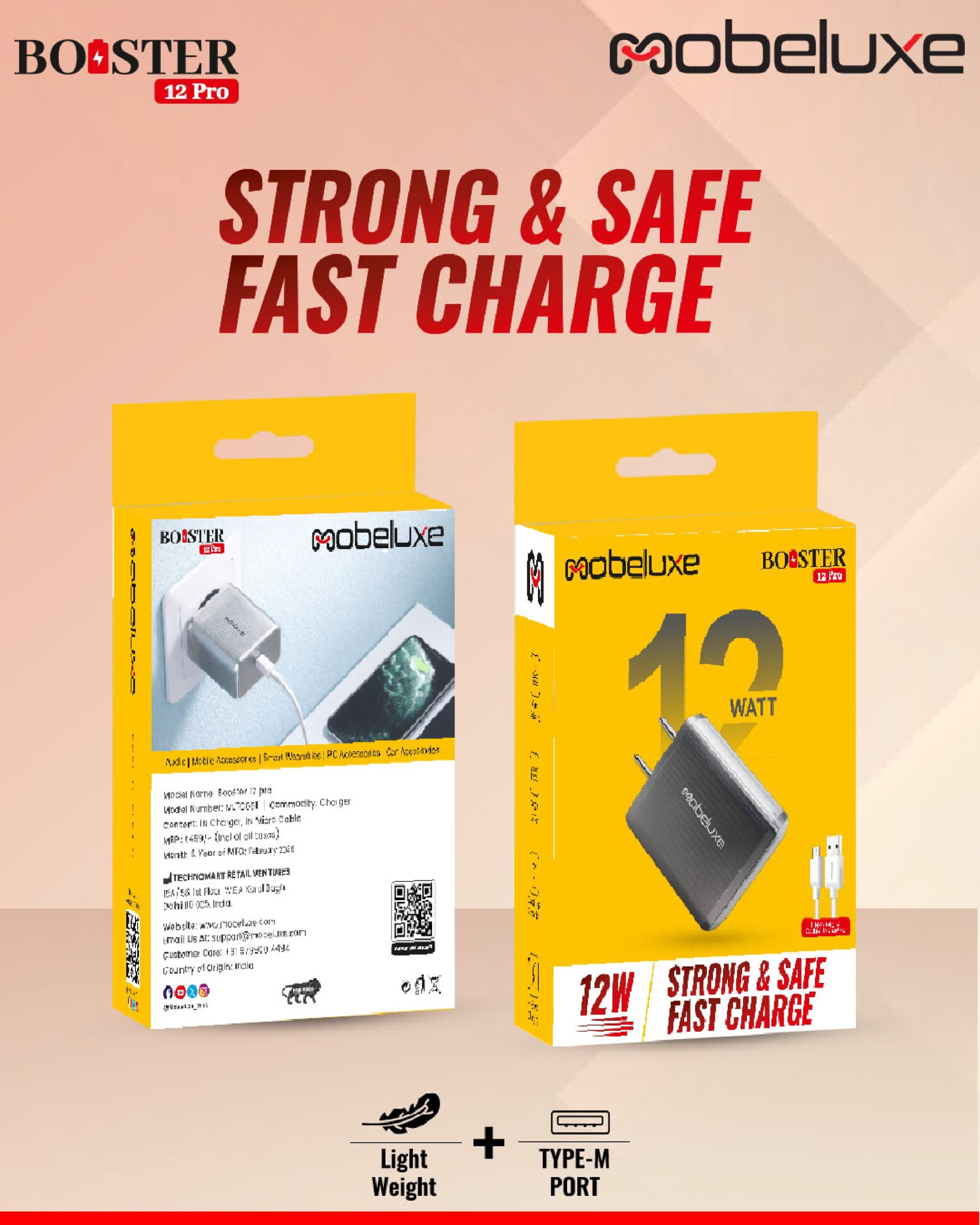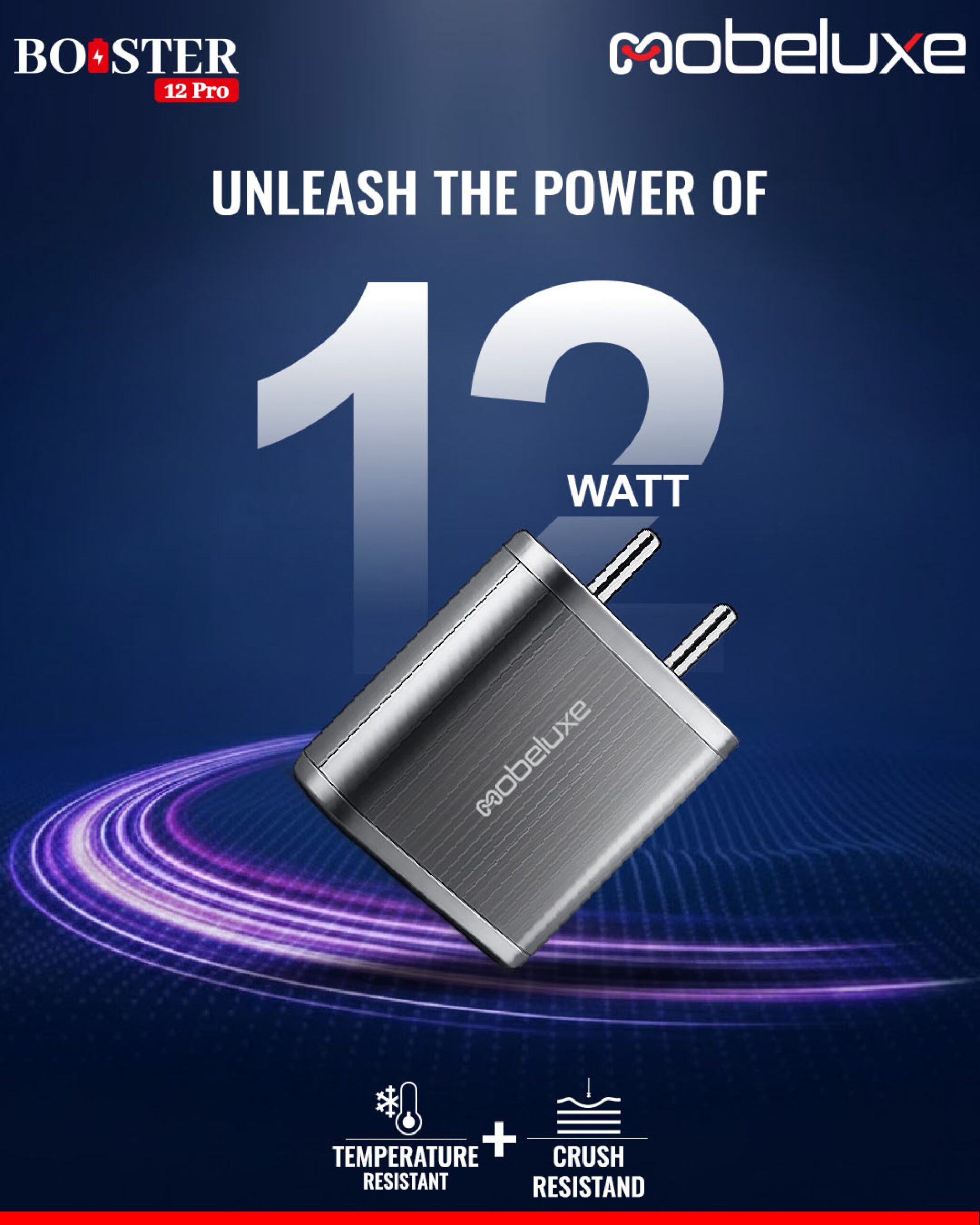 The Booster 12 Pro is a powerful and durable dual USB charger designed for fast and efficient charging. With Singal USB ports, it allows you to charge two devices simultaneously without compromising on speed. Its crush-resistant design ensures long-lasting durability and protection against everyday wear and tear. Engineered for high-speed charging, it delivers reliable power output for smartphones, tablets, and other USB-enabled devices. The package also includes a 1-meter micro cable, making it the perfect all-in-one charging solution for your daily needs.