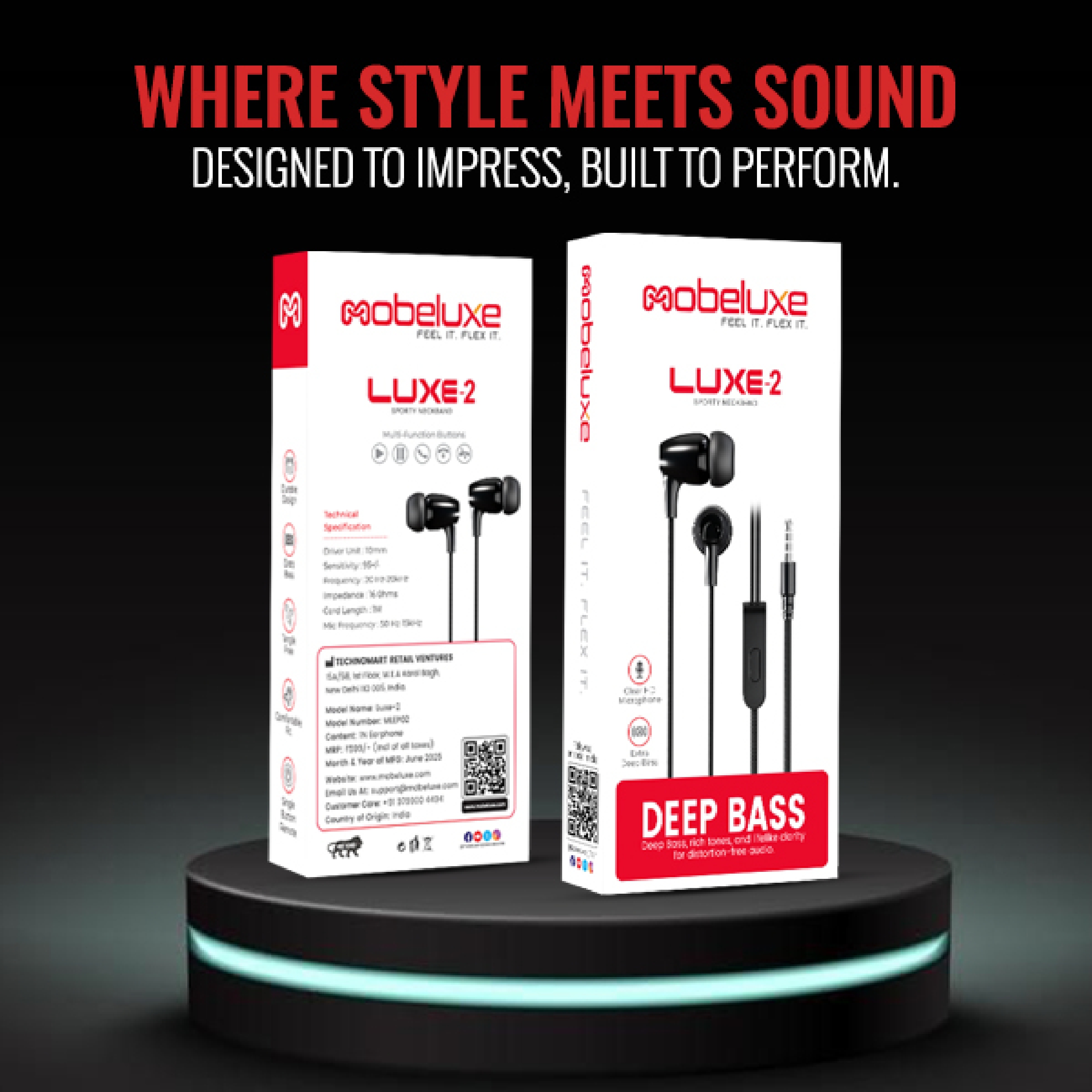 The Luxe-C is a stylish and durable wired earphone designed to deliver extra bass and crystal-clear sound quality. Equipped with a clear HD microphone, it ensures superior voice clarity during calls. Its tangle-free cable keeps your experience smooth and hassle-free, while the comfortable fit makes it ideal for long listening sessions. With a single-button remote, you can easily manage calls and music with just one touch. Compact, reliable, and performance-driven, the Luxe-C is your perfect everyday companion for music and calls.